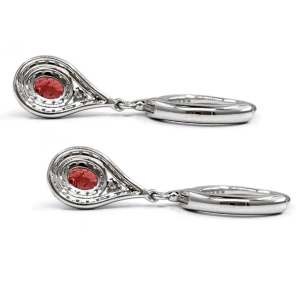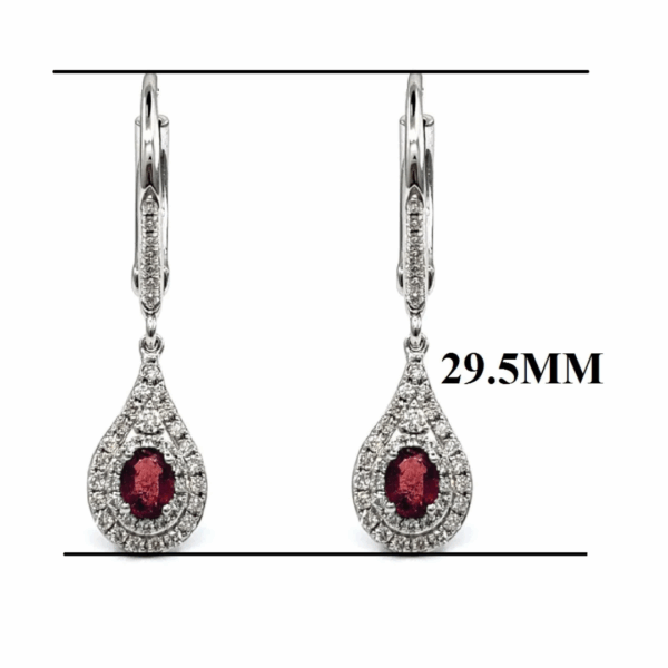 18k Solid White Gold Ruby Diamond Hoop Earrings